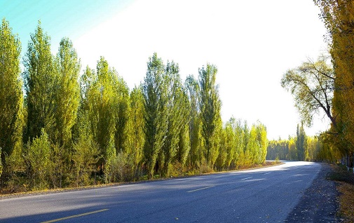 2,新疆楊,(拉丁文:Populus alba var. pyramidalis Bunge )是楊柳科屬下的銀白楊在中國南疆盆地的變種,為高15-30米的喬木植物。樹冠窄圓柱形或尖塔形,樹皮灰白或青灰色,光滑少裂,僅見雄株。主要分布于中亞、西亞、歐洲巴爾干地區(qū)、中國北方。新疆楊主要以播種和扦插繁殖盡心繁殖,生長緩慢,耐修剪,對有毒氣體抗性強(qiáng),也是城市綠化或道路兩旁栽植的樹種。